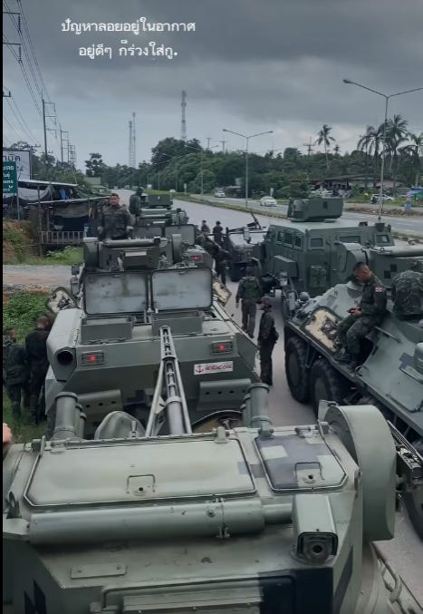 At first, it looked like Cambodia had squandered their chance to gain underdog sympathy internationally, partly due to the obvious lies that were being spread by the highest levels of governance and the brazen actions by its military.14 With visible satisfaction, Thailand got to play the role of the “grown-up” during the first exchange – which, thankfully, included exercising a lot of restraint in the face of continued provocations – but that restraint has since turned into gleeful malice. Give any military more power, and it will use it to advance the things it trains for. With pride, our current (temporary) prime minister has repeatedly stated that he has no control over the actions of Thailand’s armed forces, and that he doesn’t deem it necessary to attempt to reassert it – he has “full trust” in the military.