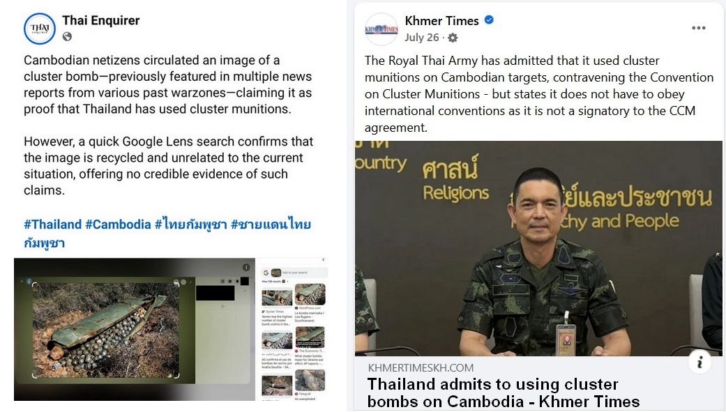 As a result, for the past few weeks Thai F-16 and Gripen jets carried out numerous near-daily bombing campaigns deep into Cambodian airspace – the Thai news report exclusively on precision strikes against military targets, while Cambodian news exclusively shows damage to schools and residential buildings.